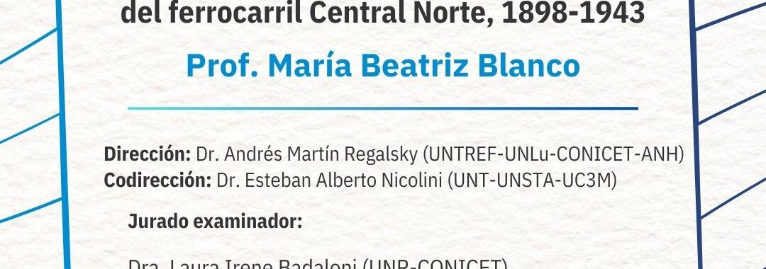 Tema: "Los talleres ferroviarios de Tafí Viejo: gestación, desarrollo y capacitación técnica del personal, al servicio de la línea del ferrocarril Central Norte, 1898-1943"