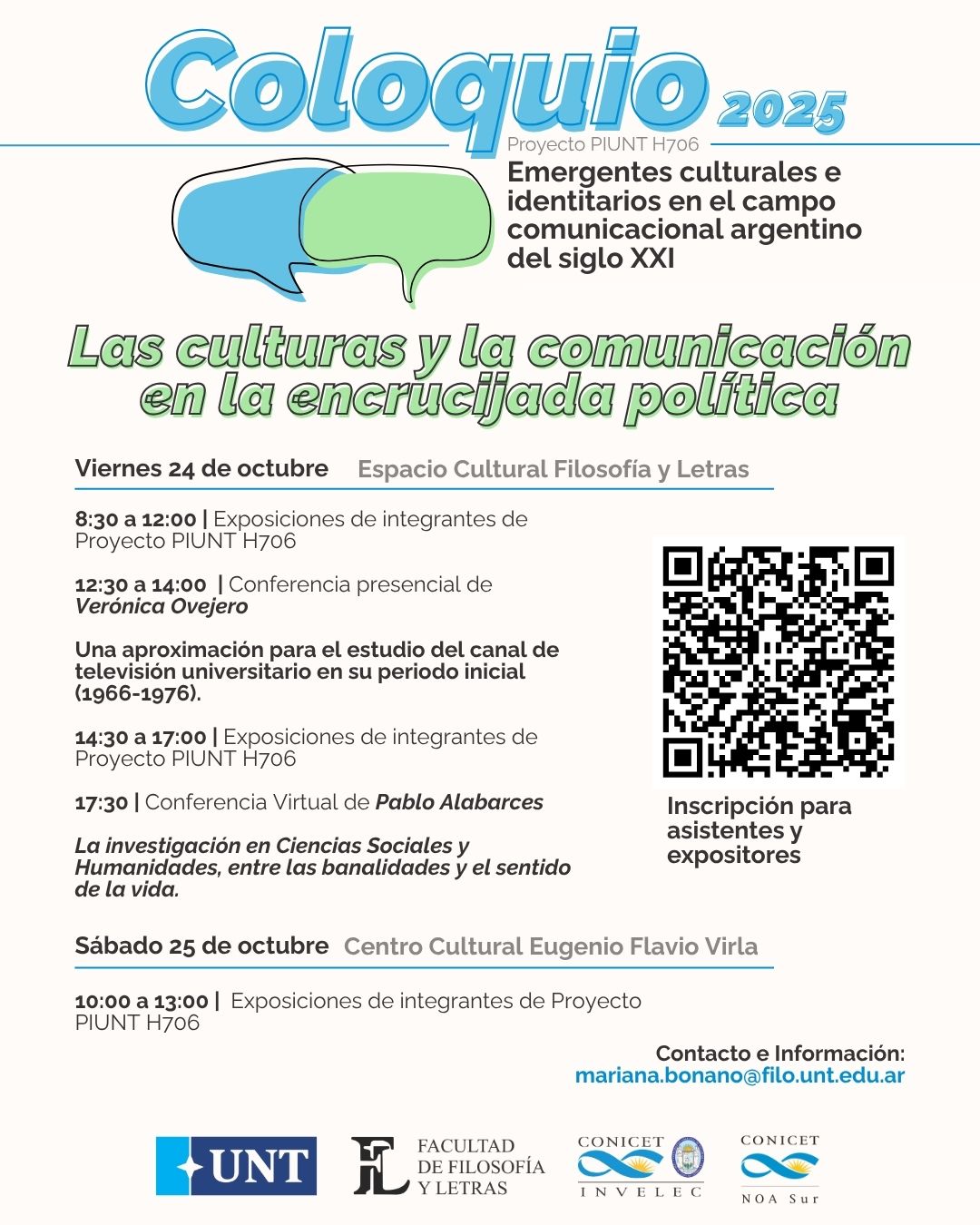 Organiza: PIUNT H 706 "Emergentes culturales e identitarios en el campo comunicacional argentino del siglo XXI"