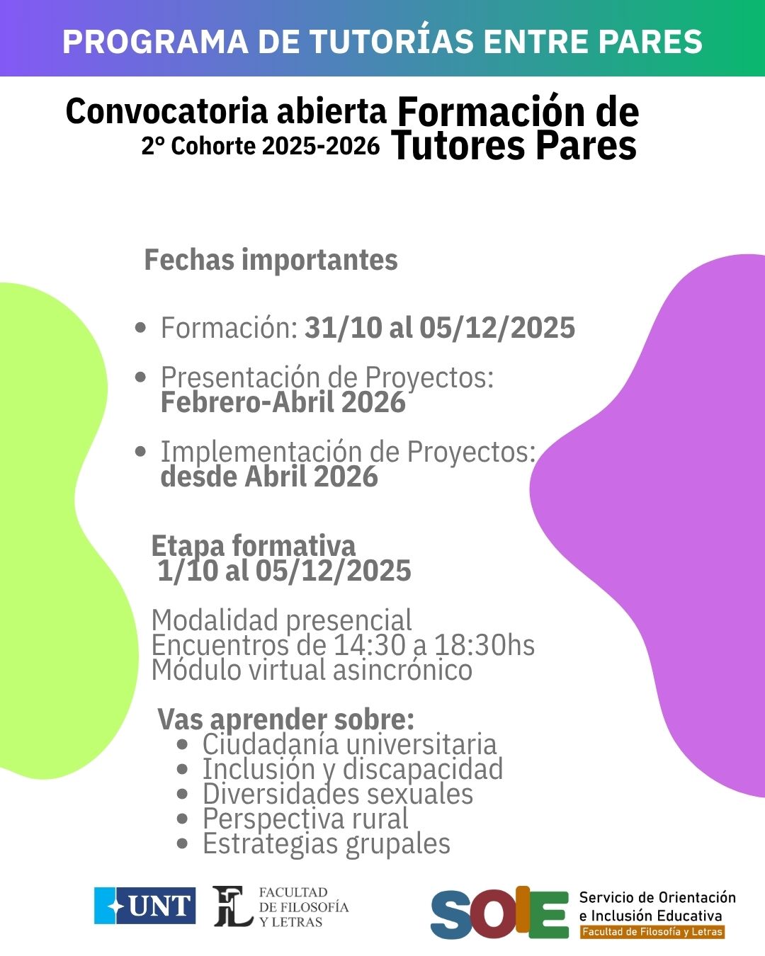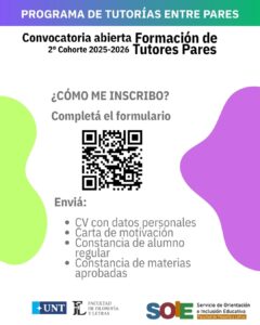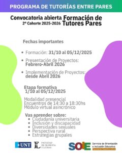 31/10/2025 - 14.30 a 16.30- La tutoría entre pares. Alcances, límites y acciones (encuentro 1) - Presencial - Prof. Mariana Gil