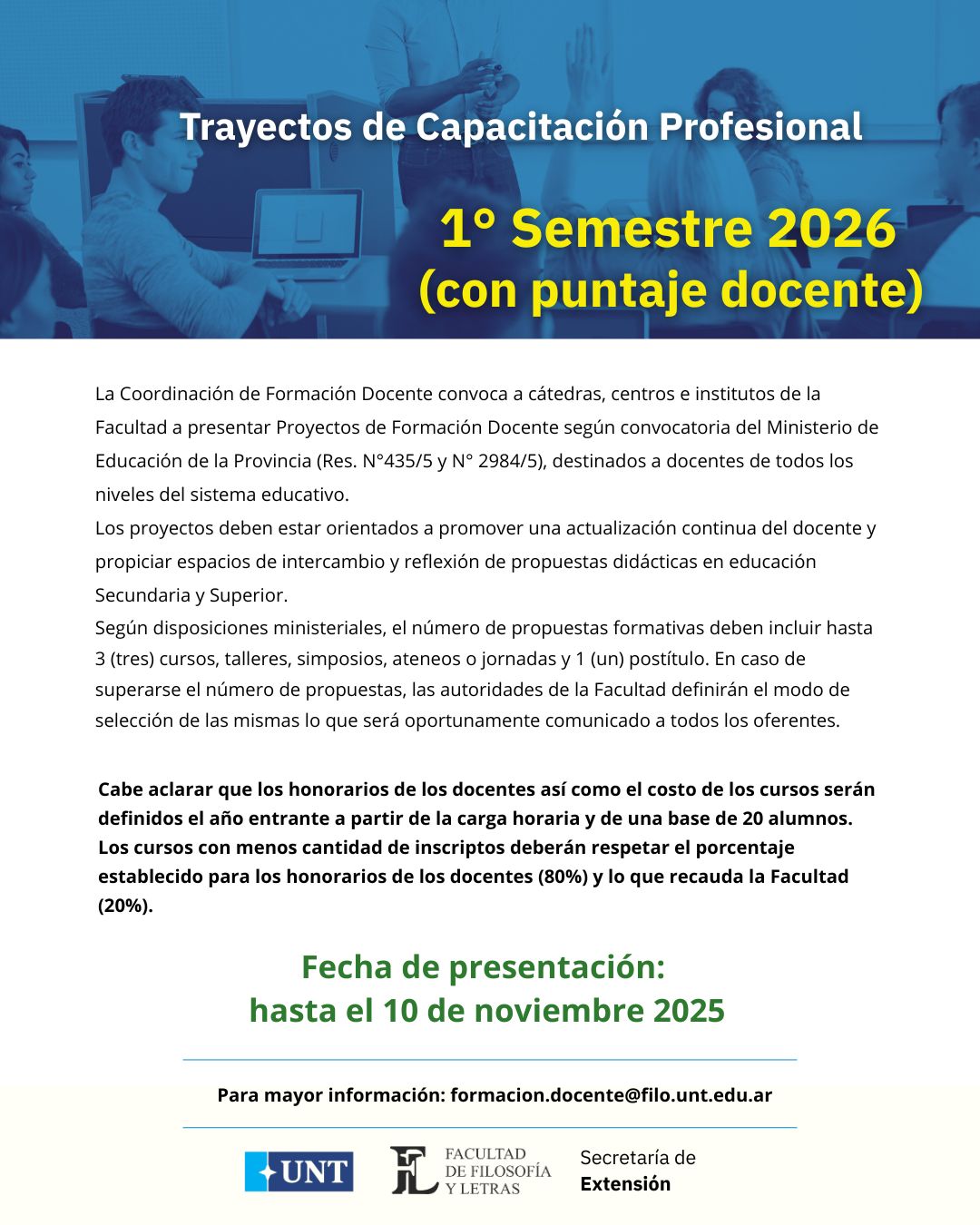 Para mayor información: formacion.docente@filo.unt.edu.ar