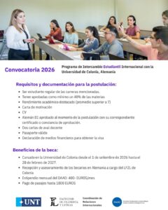 - Cursado en la Universidad de Colonia desde el 1 de setiembre de 2026 hasta el 28 de febrero de 2027.