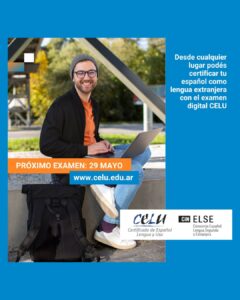 • Los días 29 de mayo (examen escrito), 1 y 2 de junio (examen oral) se tomará el próximo Examen CELU (Certificado de Español: Lengua y Uso) en modalidad digital.