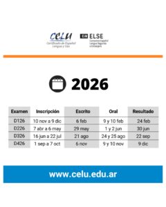 • La inscripción se realiza desde el sitio www.celu.edu.ar desde el 7 de abril hasta el 6 de mayo de 2026, (sujeto a los cupos disponibles).
