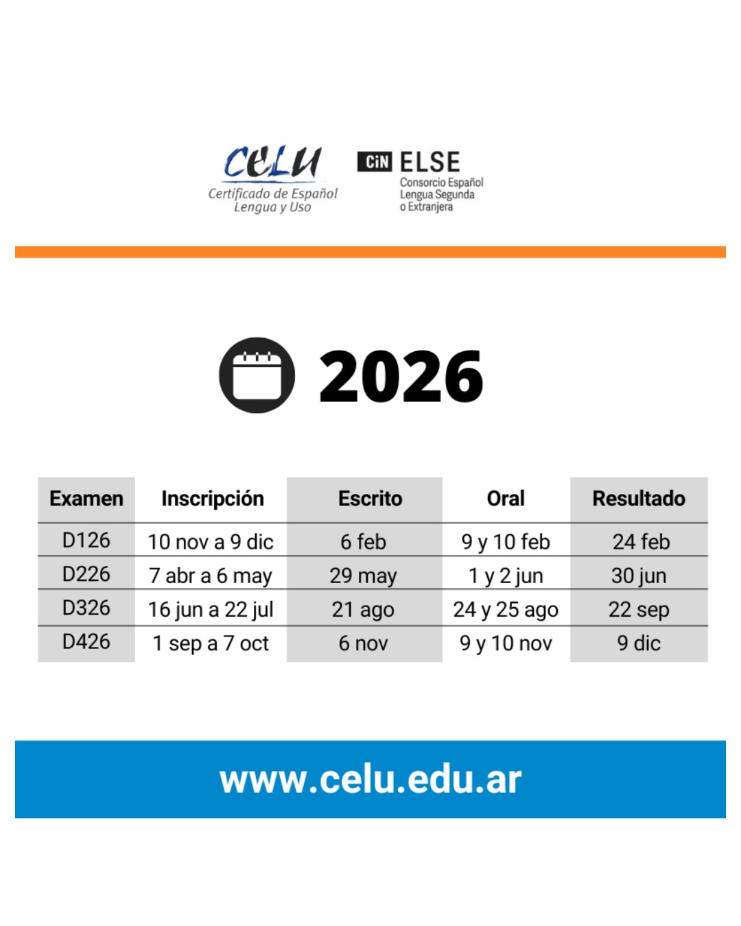 La Coordinación de Relaciones Internacionales informa que ya se encuentra disponible el calendario de tomas del Examen CELU 2026.