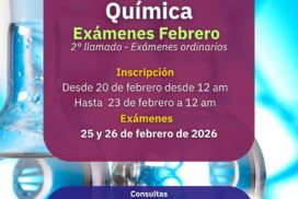 PROFESORADO EN QUÍMICA EXÁMENES febrero 2026 2° llamado. Mesa ordinaria Inscripciones: Desde el 20 de febrero 12 am hasta el ...