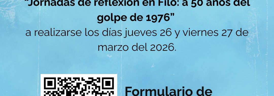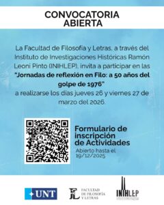 La Facultad de Filosofía y Letras, a través del Instituto de Investigaciones Históricas Ramón Leoni Pinto (INIHLEP), invita a participar en las "Jornadas de reflexión en Filo: a 50 años del golpe de 1976" a realizarse los días jueves 26 y viernes 27 de marzo del 2026.