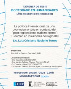Defensas de Tesis Defensa de Tesis “El Departamento de Educación Física de la Universidad Nacional de Tucumán” Defensa de Tesis “La política internacional de una provincia norteña en contexto del “post regionalismo sudamericano” Defensa de Tesis “Pensar desde el NOA” Defensa de Tesis “La eficacia de los estándares internacionales de educación superior” Defensa TIF “La ‘mala mujer’. Medios, estereotipos y castigo social en la disputa por el deseo” Defensa de Tesis “Las trayectorias educativas y el currículum en la Universidad” Defensa de Tesis “Conocimiento local y gobernanza del agua” Defensa de Tesis “Pensamiento económico y desarrollo en Latinoamérica” Defensa de Tesis “Habilidades cognitivas y problemas emocionales en la primera infancia” Defensa de Tesis “Los talleres ferroviarios de Tafí Viejo” Defensa TIF “Perspectiva de derechos humanos, género y diversidad en las sentencias judiciales” Defensa de Tesis “Géneros, sexualidades y espacios en movimiento” Defensa de Tesis “Políticas lingüísticas para la promoción del español lengua segunda y extranjera (ELSE)” Defensa de Tesis “Asentamientos informales, desigualdades y derecho a la ciudad” Defensa de Tesis “Políticas del lenguaje y educación” 1 2 3 … 10 ›