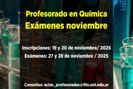PROFESORADO EN QUÍMICA EXÁMENES noviembre 2025 Inscripciones: 19 y 20 de noviembre / 2025 Exámenes: 27 y 28 de noviembre ...