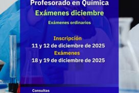 PROFESORADO EN QUÍMICA EXÁMENES diciembre 2025 Inscripciones: 11 y 12 de diciembre / 2025 Exámenes: 18 y 19 de diciembre ...