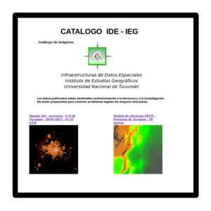 El Catálogo Digital, permite visualizar y descargar los metadatos y los archivos disponibles. Debe citar esta fuente de información: Infraestructura de Datos Espaciales del Instituto de Estudios Geográficos – UNT (2023)